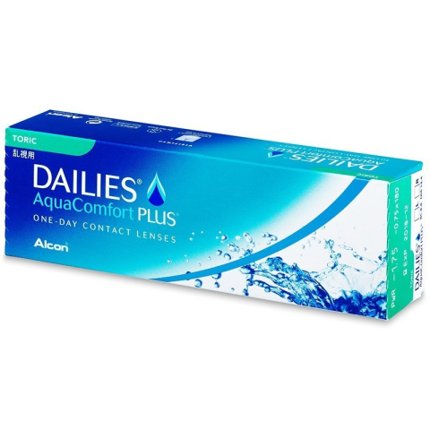 Dailies AquaComfort Plus Toric kontaktlencsék az asztigmatizmus korrekciójára. 30 és 90 darabos kiszerelésben vásárolhatóak meg.
