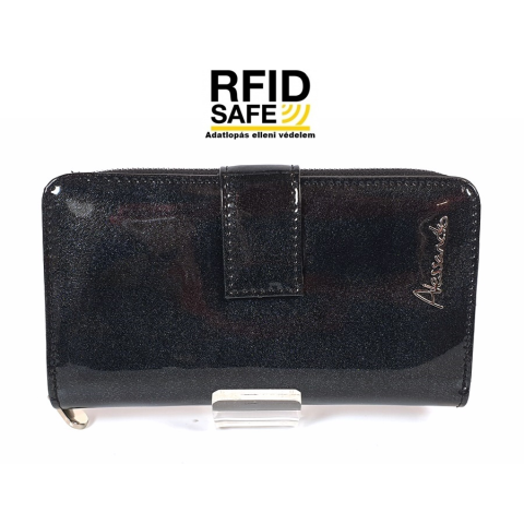 1 kép Alessandro Paoli RF védett, közepes, fekete brillant lakk, kétoldalas pénztárca 21-17