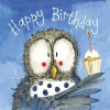 Képeslap Alex Clark borítékkal, 14x14 cm, bagoly HBD - P0080-0463 - -