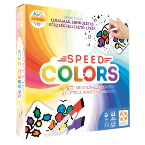 A Speed Colors egy fantasztikus társasjáték, mely a memóriát és a művészi készségeket egyaránt fejleszti. A feladat az, hogy memorizáljuk a kártya egyik oldalán lévő színes ábrát, majd a másik oldalon lévő fekete-fehér ábrát pont úgy színezzük ki. Minden egyes mező pontokat ér, így nem árt sietni, de résen kell lenni és a lehető legpontosabban dolgozni, mert ha kimegyünk a vonal