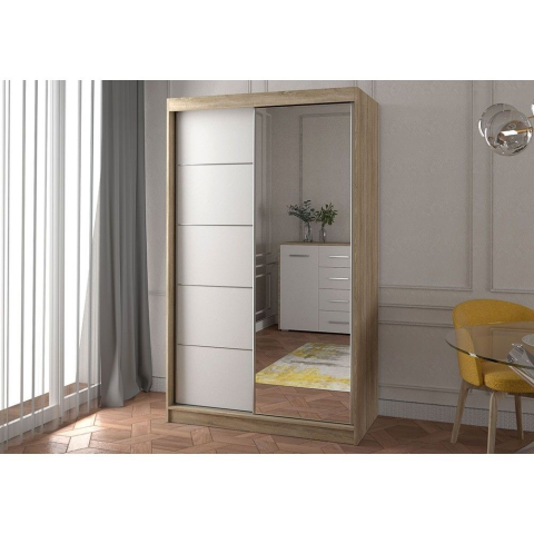 Teljes Alfaomega Firenze120 tolóajtós, tükrös, gardróbszekrény tölgy-fehér termékleírás