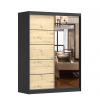 Alfaomega Firenze150 M2 tolóajtós, tükrös gardróbszekrény fekete-artisan tölgy bútor termékleírás