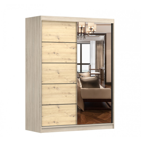 1 kép Alfaomega Firenze150 M2 tolóajtós, tükrös gardróbszekrény tölgy-artisan tölgy