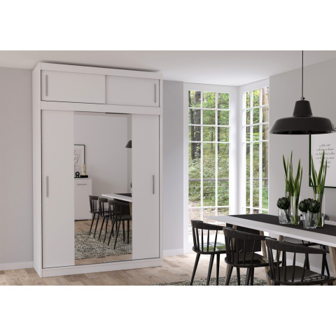 1 kép Alfaomega Firenze150 magasított tolóajtós, tükrös gardróbszekrény fehér-fehér