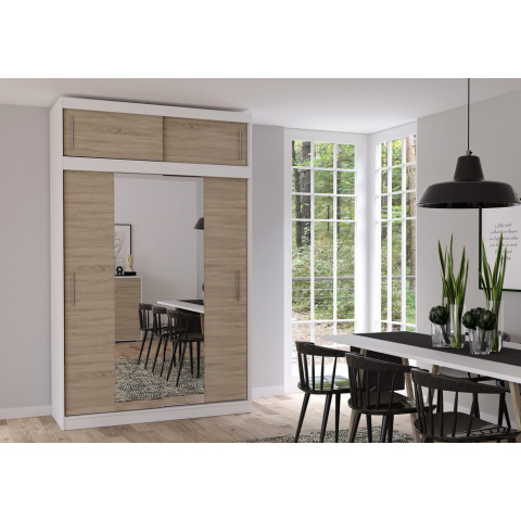 Teljes Alfaomega Firenze150 magasított tolóajtós, tükrös gardróbszekrény fehér-tölgy termékleírás