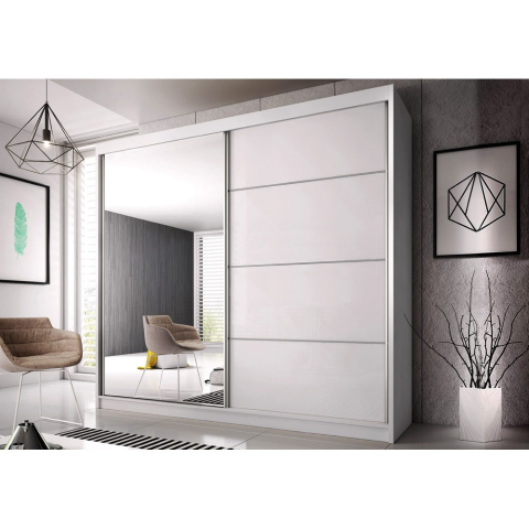 Alfaomega Firenze183 M35 magasfényű ajtó, matt vázas gardróbszekrény fehér-fehér bútor termékleírás
