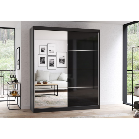 Alfaomega Firenze183 M35 magasfényű ajtó, matt vázas gardróbszekrény fekete-fekete bútor termékleírás