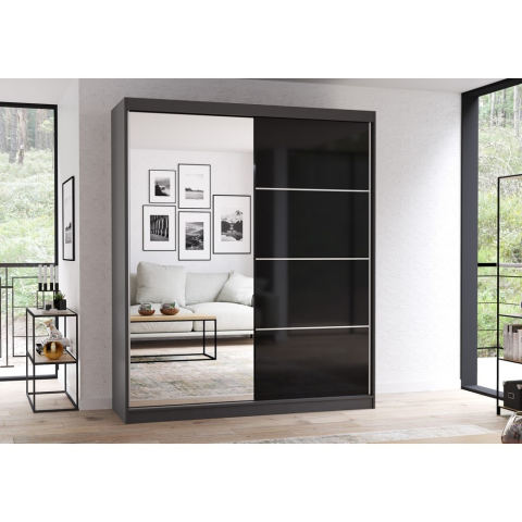 Alfaomega Firenze183 M35 magasfényű ajtó, matt vázas gardróbszekrény grafit-fekete bútor termékleírás