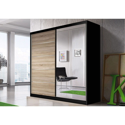 Alfaomega Firenze183 tolóajtós, tükrös, gardróbszekrény fekete-tölgy bútor termékleírás