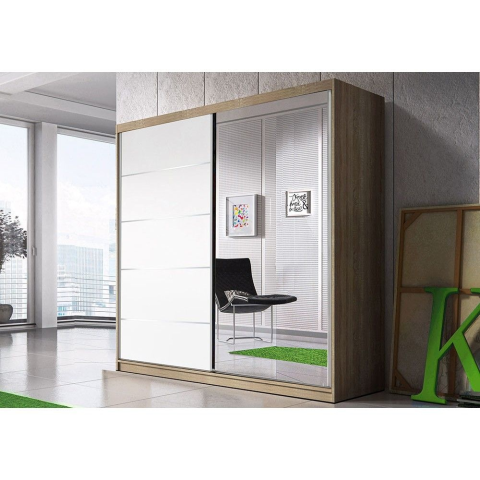 1 kép Alfaomega Firenze183 tolóajtós, tükrös, gardróbszekrény tölgy-fehér