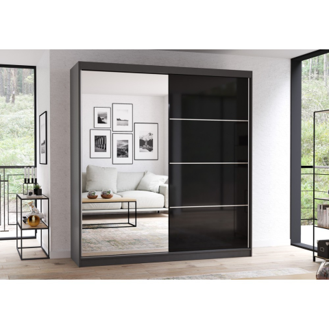 1 kép    Alfaomega Firenze203 M35 magasfényű ajtó, matt vázas gardróbszekrény grafit-fekete
