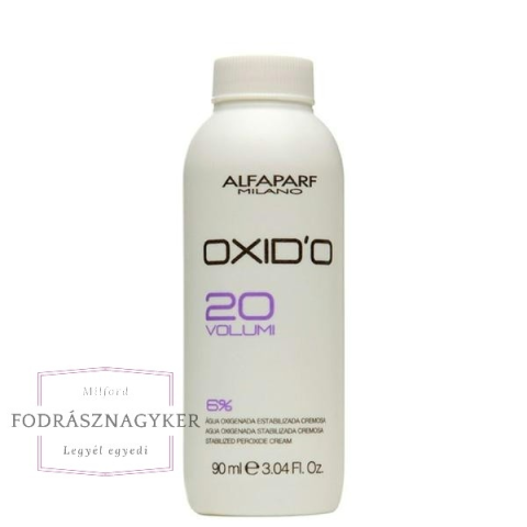 ALFAPARF Krémhidrogén 6% OXID’O 20 VOLUMEN – 6% LEÍRÁS Fedéshez és 1-2 árnyalat világosításhoz. KISZERELÉS 90 ml KÖNNYEDÉN ALKALMAZHATÓ KRÉMES TEXTÚRA, AMELY NAGYOBB PONTOSSÁGOT ÉS SAJÁTOSSÁGOT BIZTOSÍT. PARABÉN-, PARAFFIN- ÉS ÁSVÁNYI OLAJOKTÓL MEN