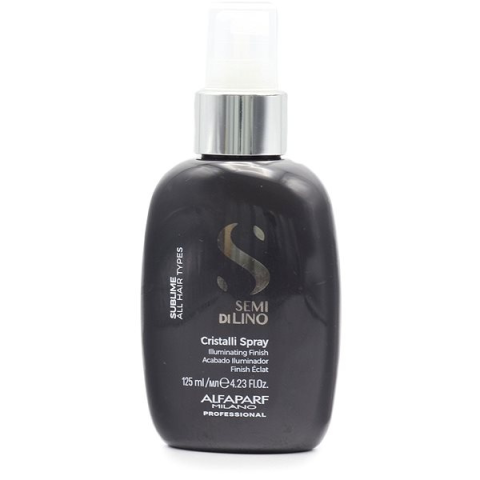 Hajspray - luxus kozmetikum és professzionális kozmetikum, fényesítő, hajsimító, fésülést könnyítő, erősítő és ragyogást fokozó hatás, minden hajtípusra, kifakulás elleni védelem, 125 ml-es kiszerelésben Növeld hajad fényét, vitalitását és természetes szépségét a Semi Di Lino Sublime Cristalli Spray Illuminating Finish ápoló spray-vel az olasz Alfaparf Milano márkától. Ez a könnyű spray minden hajtípu