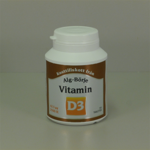 Alg-Börje vitamin d3 150 db Vitamin D3-(kolekalciferol) 2500 NE. ,dicalcium phospat dyhidrat,mikrokristályos cellulóz,magnézium stearat.