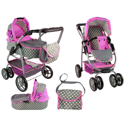 Baby Doll babakocsi 2 az 1-ben mózeskosár rózsaszín csillagokkal Baby Doll babakocsi 2 az 1-ben mózeskosár Rózsaszín Csillagok Ez a babakocsi ideális játék azoknak a lányoknak, akik vigyázni szeretnének a babáikra. A divatos színek és grafikák játé...