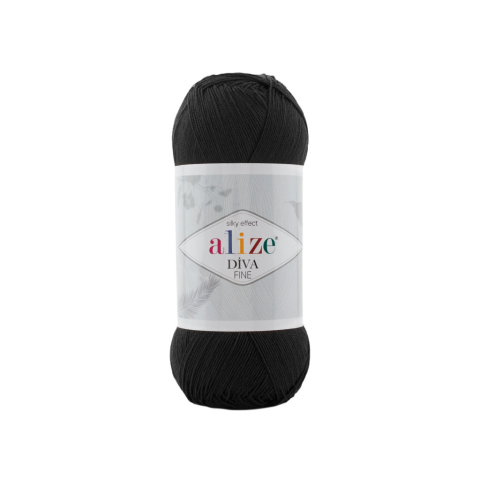 1 kép Alize DÍVA FINE horgoló és kötőfonal - Fekete - 060