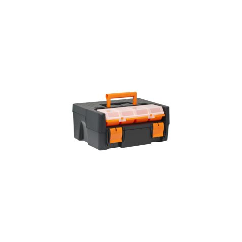 -belsejében 1 nagy rekesz + 4 kisebb fix rekesz -A tetején külön álló, kivehető 4 fix rekeszes tároló, transzparens tetővet -A láda dupla műanyag csattal záródik -Műanyag füllel Méret: 310x165x230mm
