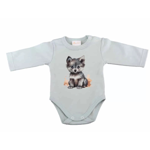 1 kép Állatos Hosszú ujjú baba body farkas mintával