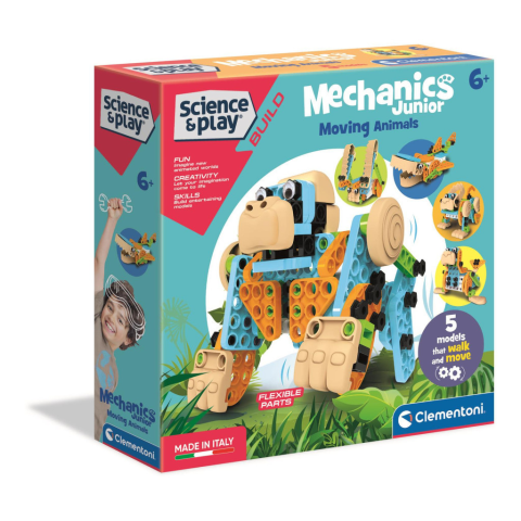 Animals, Állatos építőjáték Clementoni Méret: 30x30cm - öt készíthető el: gorillát, cápát, fókát, oroszlánt és egy rovar - Tartalmaz részletes szerelési útmutatót is. - több mint 120 db elemből áll - a játék motorizált, 3 db 1,5V AAA elem szükséges hozz