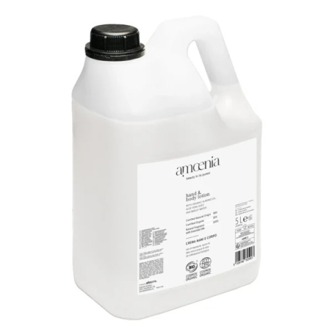 Amoenia kéz és testápoló utántöltő 5 liter. Biológiai termesztésből származó összetevőkkel, például mandulaolajjal, aloe vera levével és árpavízzel gazdagítva a táplált, bársonyos és illatos bőrért.100%-ban természetes illatanyag, amely kizárólag érté