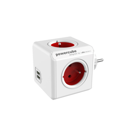 1 kép Allocacoc 1202RD/OUPC PowerCube Original Elosztó, 4 dugalj + 2 USB csatlakozó, piros
