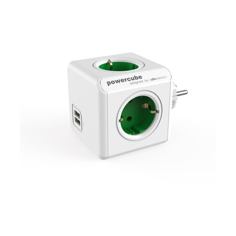1 kép Allocacoc Powercube 1202GN/DEOUPC Hálózati elosztó USB aljzattal - Zöld/Fehér