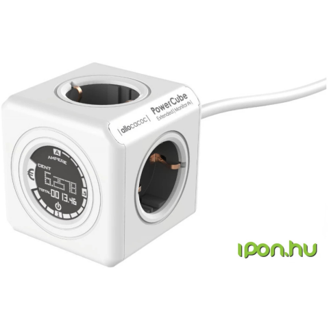 1 kép Allocacoc PowerCube 4 aljzat elosztó Monitorral 1.5m fehér-szürke