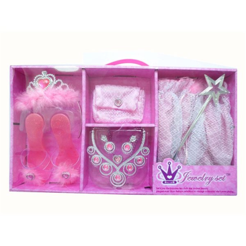 Jelmez kiegészítő - szoknya, rózsaszín és ezüst kivitel, pálca, ékszerek, hajkiegészítők, cipő és táska a csomag része Klíčové vlastnosti doplňku ke kostýmu Alltoys, set pro princeznu se sukýnkou a pantoflíčkyKaždá holčička by chtěla být princeznouSada obsahuje sukýnku, pantoflíčky, korunku, kabelku, h