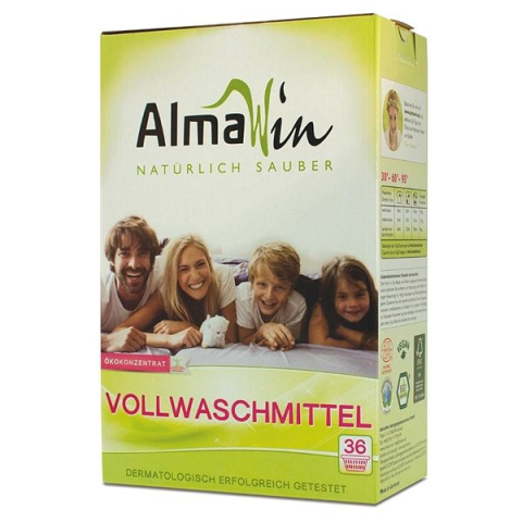 Almawin Általános mosópor koncentrátum - 36 mosáshoz 30°/60° és 95°C-on hatékony mosást biztosít Ecocert által minősített öko mosószer. Bőrgyógyászatilag sikeresen tesztelt. Vegán. Kizárólag géntechnológia mentes mikroorganizmusokból készült géntechnol