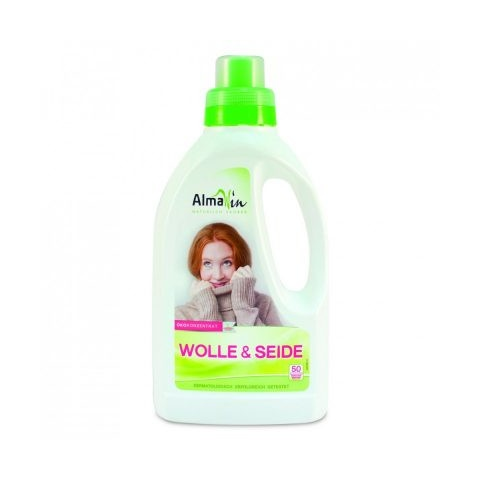 Almawin Gyapjú mosószer koncentrátum 50 mosáshoz Gyapjú és selyem mosására 20°C - 40°C-on. ECO Garantie által minősített öko mosószer. Bőrgyógyászatilag sikeresen tesztelt. Vegán. Adagolás: 1 adagolókupak = 30 ml. Kézi mosásnál: 1/3 adagolókupakkal