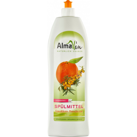 Almawin kézi mosogatószer koncentrátum homoktövissel és mandarinnal, 1000 ml -Takarékos, bőr- és környezetbarát mosogatószer - Oldja a zsírt és a szennyeződésket - a ragyogóan tiszta edényekért. - A mosogatószer a homoktövis kivonat és a búzaprotein ál