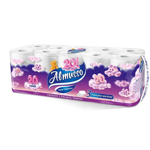 WC papír - háromrétegű, illatmentes A háromrétegű, illatmentesALMUSSO toalettpapír, amely 100% tiszta cellulózból készült, felhőként puha és tapintásra nagyon kellemes szerkezetű. A rétegek közötti ragasztás és a diszkrét dombornyomás k