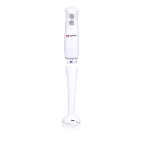 Alpina BOTMIXER 23091 Leírás 	6x6x35,5cm 	Aprítótál űrtartalma: 0,5L 	Fő anyaga ABS 	Az élelmiszerrel érintkező részek BPA mentesek 	A botmixer tartozékok mosogatógépben moshatók 	230V 	400W 	Maximum sebesség: 16.000 RPM 	2 sebességes (normál + turbo)