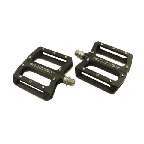 Altrix Premium alacsony profilú ipari csapágyas platform pedál cserélhető szegecsekkel. Extra alacsony profilú, a sarat jól tűrő alu pedáltest, minőségi acéltengely, hatékony tömítés és cserélhető ipari csapágyazás jellemzi. Szegecsek száma oldalanként 10 db (cserélhető). Csak fekete színben. Az egyik legjobb ár-érték arányú ipari csapágyas modell. Mindössze 17 mm magas, és 430 g/ pár.