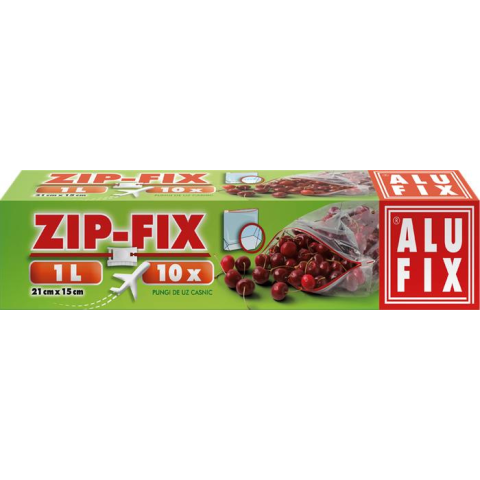 Cipzáras zacskó, 1 l, ALUFIX Zipp Fix Az ALUFIX ZIP-FIX cipzáras élelmiszer zacskók olyan praktikus és visszazárható tasakok, amelyek kiválóan alkalmasak élelmiszerek tárolására. A Zipp Fix termékcsalád különböző méretekben érhető el. -fagyasztás, por
