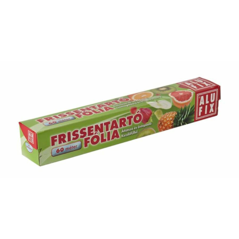 Frissentartó fólia, 60 m, ALUFIX Átlátszó háztartási polietilén, rugalmas, öntapadó, megakadályozza az ételek kiszáradását, szagok átvételét a hűtőszekrényben. Használható húsok, zöldségek csomagolásánál. Minden tekercs speciálisan kerül feltekerésre,