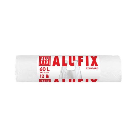 ALUFIX Szemeteszsák, köthető füllel, 60 l, 12 db, 63x71 cm, 10 µ, ALUFIX, fehér tisztító- és takarítószer, higiénia termékleírás