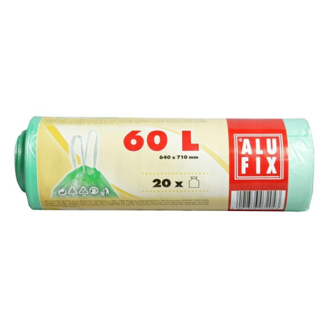 1 kép ALUFIX Szemeteszsák, zárószalagos, 60 l, 20 db, ALUFIX