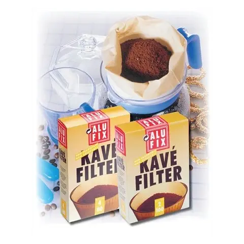 Szűrőpapír, 4 adagos, ALUFIX. - /csom (100 db) Az Alufix kávéfilter nem fehérített, nem színezett papír. A filter éleinek összeillesztése ragasztó felhasználása nélkül, nagy nyomással történik. A kávéfilter a kávézaccal együtt komposztálható. -4-es mé