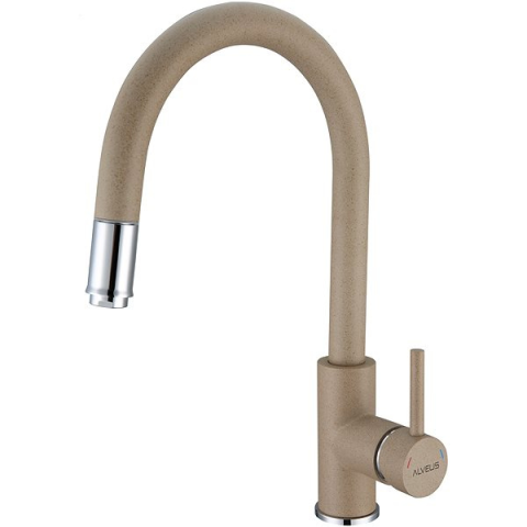 Csaptelep - mosogató csaptelep, állványos, karos működtetés, anyaga gránit, klasszikus stílusú, kerámiabetétes, zuhanyfejes, kihúzható, magasított és fonott zuhanycsöves, bézs színű kivitel Keresi keverő csaptelep, modern design és a minőségi jellemzők? Ebben az esetben, akkor nézd márka Alveus állítások között.Az Alveus Delos 55 bézs mosdó csaptelep modern kivitelezésű, és megkapóan pra