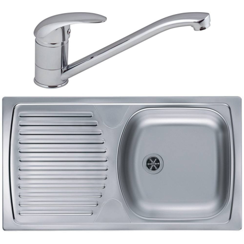 Ez a készlet tartalmaz mosogató Alveus Basic 170 csapot. Rozsdamentes acélból készült, ez lehetővé teszi a könnyű tisztítás, és ezáltal fenntartja a magas szintű higiéniai a konyhában. A hossza 78 cm, szélessége 43,5 cm, és a mélysége 15 cm, Basic mos