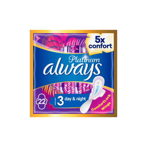 Always Platinum Day & Night Szárnyas Egészségügyi Betét, 22 db