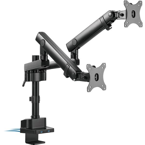 Monitorállvány - asztali, kábelkivezetőhöz, 17 - 32" méretű monitorokhoz, terhelhetősége 16 kg, dőlésszög +/- 90°, forgatási szög 180°, forgás 180°, VESA felfüggesztés 100×100 és 75×75 mm, forgatható, dönthető és rugós, fekete kivitel Élvezd a prémium ergonómiát az Alza tartóivalAz AlzaErgo Arm D85B Essential USB tartó lehetővé teszi két akár 32 "-es monitor felszerelését, VESA gyorsan kioldható adapterekkel. A gyors és k