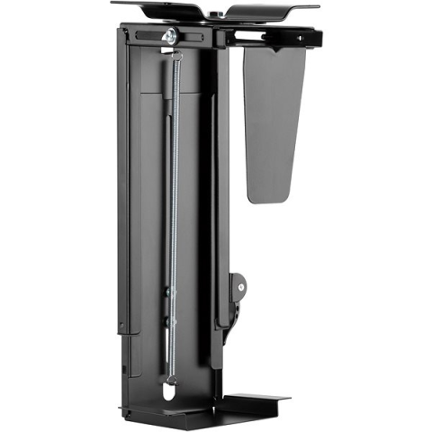 PC tartó - asztallap alá, forgó, állítható magasság és mélység, PC magassága 30 - 51 cm és szélessége 8,8 - 20,3 cm, terhelhetősége 10 kg, mérete 58,3 × 17,5 cm (Ma×Sz), anyaga fém, fekete kivitel Forgatható asztal alatti tartó, amelyhelyet takarít megFelejtsd el a számítógépet az asztalon, a padlón, a polcon vagy bárhol máshol, és helyezd el hatékonyan a számítógép "házát". Az AlzaErgo PCM110