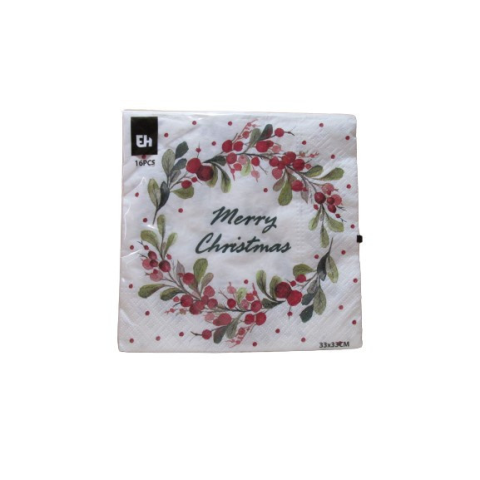1 kép AM/63 Karácsonyi szalvéta koszorú Merry Christmas 33x33 cm 16db/cs