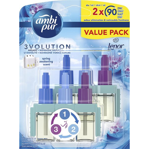 Légfrissítő - elektromos (elemes/hálózati), kellemes illattal tölti meg a helyiséget Teremts otthonodban kellemes hangulatot az Ambi Pur légfrissítővel!Az Ambi Pur 3Volution Spring Awakening légfrissítő három különböző illatot váltogat, amelyek tökéletesen kiegészítik egymást. Az illa