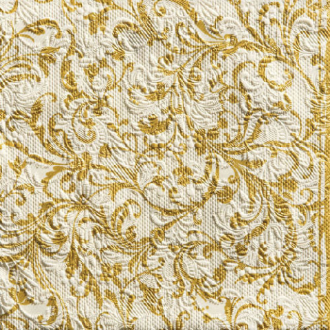 A(z) Elegance Damask cream gold dombornyomott papírszalvéta 33x33cm,15db-os egy stílusos és igényes darab papír anyagból készült , mérete: Kiterítve 33x33cm . A termék a(z) Ambiente márka kínálatából származik , eredeti származási helye: Hollandia.
