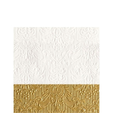 A(z) Elegance Dip Gold dombornyomott papírszalvéta 25x25cm,15db-os egy stílusos és igényes darab papír anyagból készült , mérete: Kiterítve 25x25cm . A termék a(z) Ambiente márka kínálatából származik , eredeti származási helye: Hollandia.