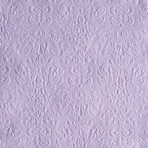 A(z) Elegance lavender dombornyomott papírszalvéta 40x40cm,15db-os egy stílusos és igényes darab papír anyagból készült , mérete: Kiterítve 40x40cm . A termék a(z) Ambiente márka kínálatából származik , eredeti származási helye: Hollandia.