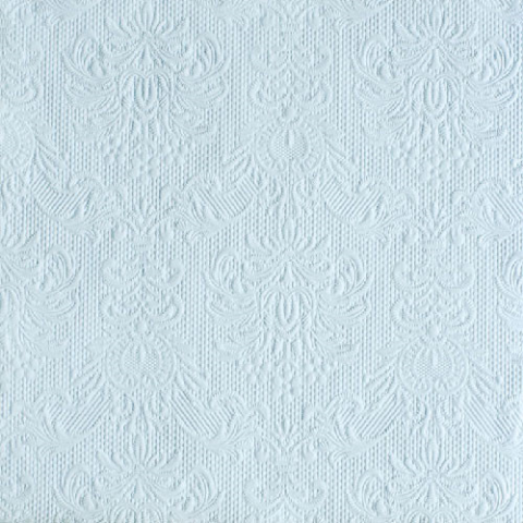 A(z) Elegance light blue dombornyomott papírszalvéta 40x40cm,15db-os egy stílusos és igényes darab papír anyagból készült , mérete: Kiterítve 40x40cm . A termék a(z) Ambiente márka kínálatából származik , eredeti származási helye: Hollandia.